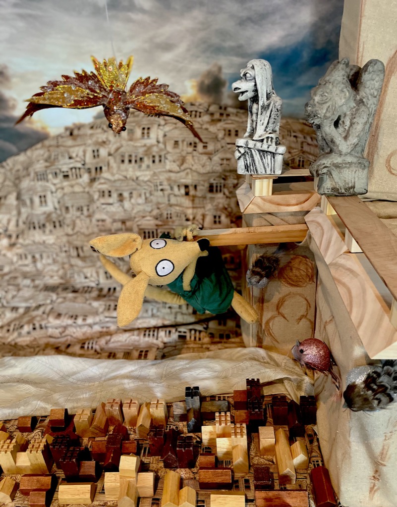 A bravura performance by Doofus and the Black Horse, who excel, mixed with the Purple Hippo standing on the back of the Little Sheep attempting to convince us it is the gormless squire Sancho Panza on his donkey. If it weren’t so apropos it would be laughable. As it is, it is laughable and endearing. Astounding!