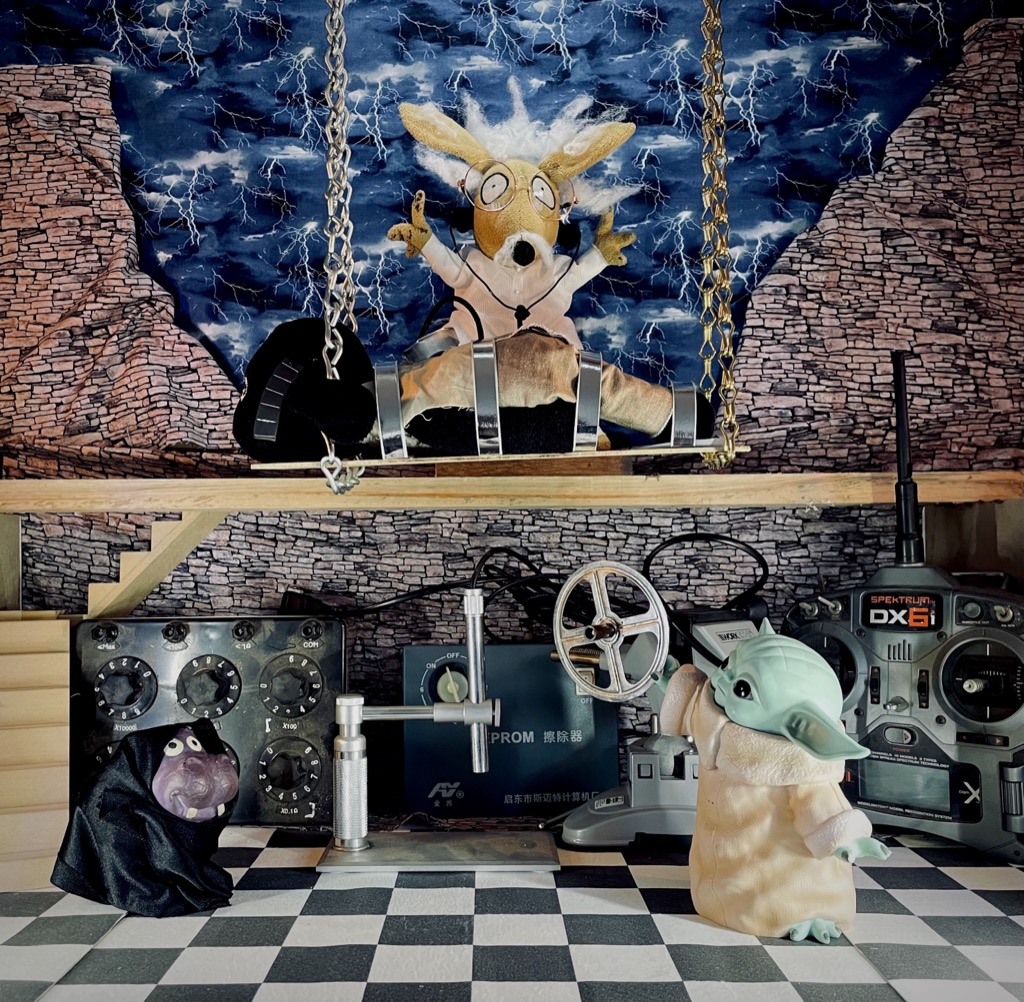 Doofus and the Duck present, in honour of the 172nd anniversary of the death of British pioneering Science-Fiction author Mary Wollstonecraft Shelley and in commemoration of the upcoming surgical procedure being undertaken by one of the Company’s Founders, their tableau of a classic scene image taken from Mel Brooks and Gene Wilder’s classic Horror-Comedy film “Young Frankenstein,” entitled “It’s Alive!! (1974),” starring the ABC Interpretive Dance Bandicoot as The Irrepressible Inventor Dr Victor Frankenstein (Gene Wilder) and Shaun the Sheep as The Monster; with the Purple Hippo as The Ever So Humble Servant Igor (Marty Feldman), with China Baby as The Other Evil Henchman