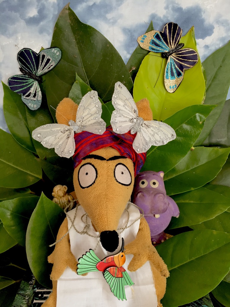 Doofus and the Duck present, as part of their on-going series of solo works, their re-imagination of a self-portrait by the acclaimed Mexican artist Kahlo (born Magdalena Carmen Frida Kahlo y Calderón), entitled “Self-Portrait with Thorn Necklace and Hummingbird (1940),” starring the ABC Interpretive Dance Bandicoot as The Artist Frida Kahlo, and featuring the Purple Hippo as A Bad Luck Panther